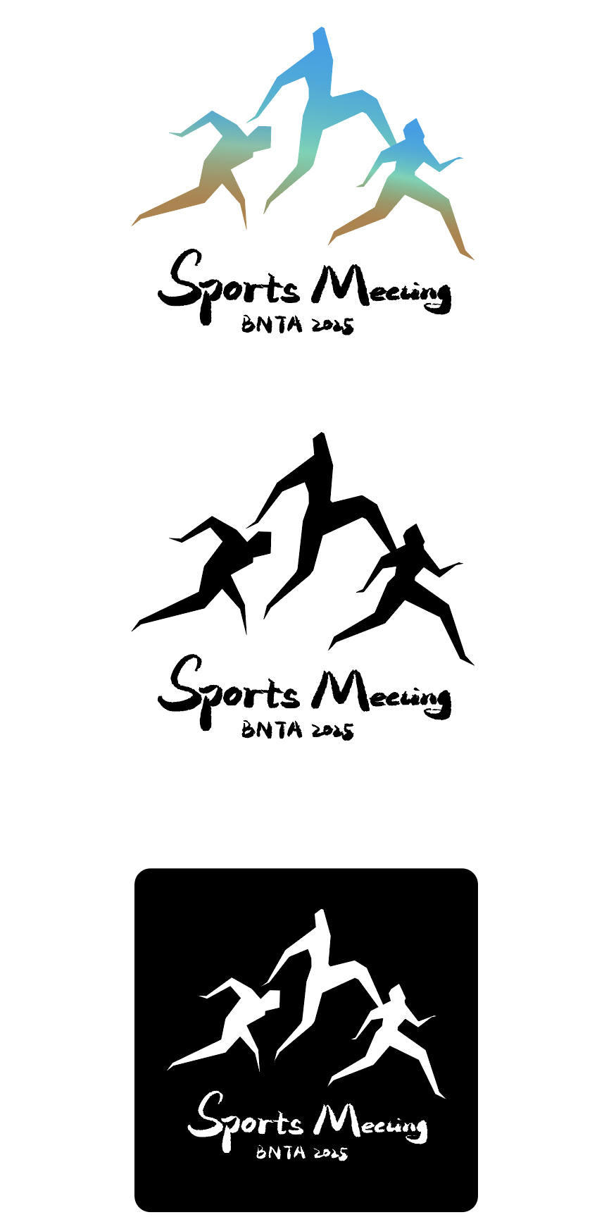 随后,我对设计进行了调整,形成了第二版。设计依旧保留以千里江山图为灵感,保留以前选取的富有丹青韵味的色彩,将跑步、跳高、跳远三个运动小人的造型巧妙融合,组合成山峦的形态。既展现出运动项目的多样姿态,让会徽在视觉上更具运动张力,也更紧密地贴合了运动会的主题。不过,此版选取的运动形态在表现力上仍有不足,于是我又进行了最终改版,最终完成了本次运动会会徽的设计。