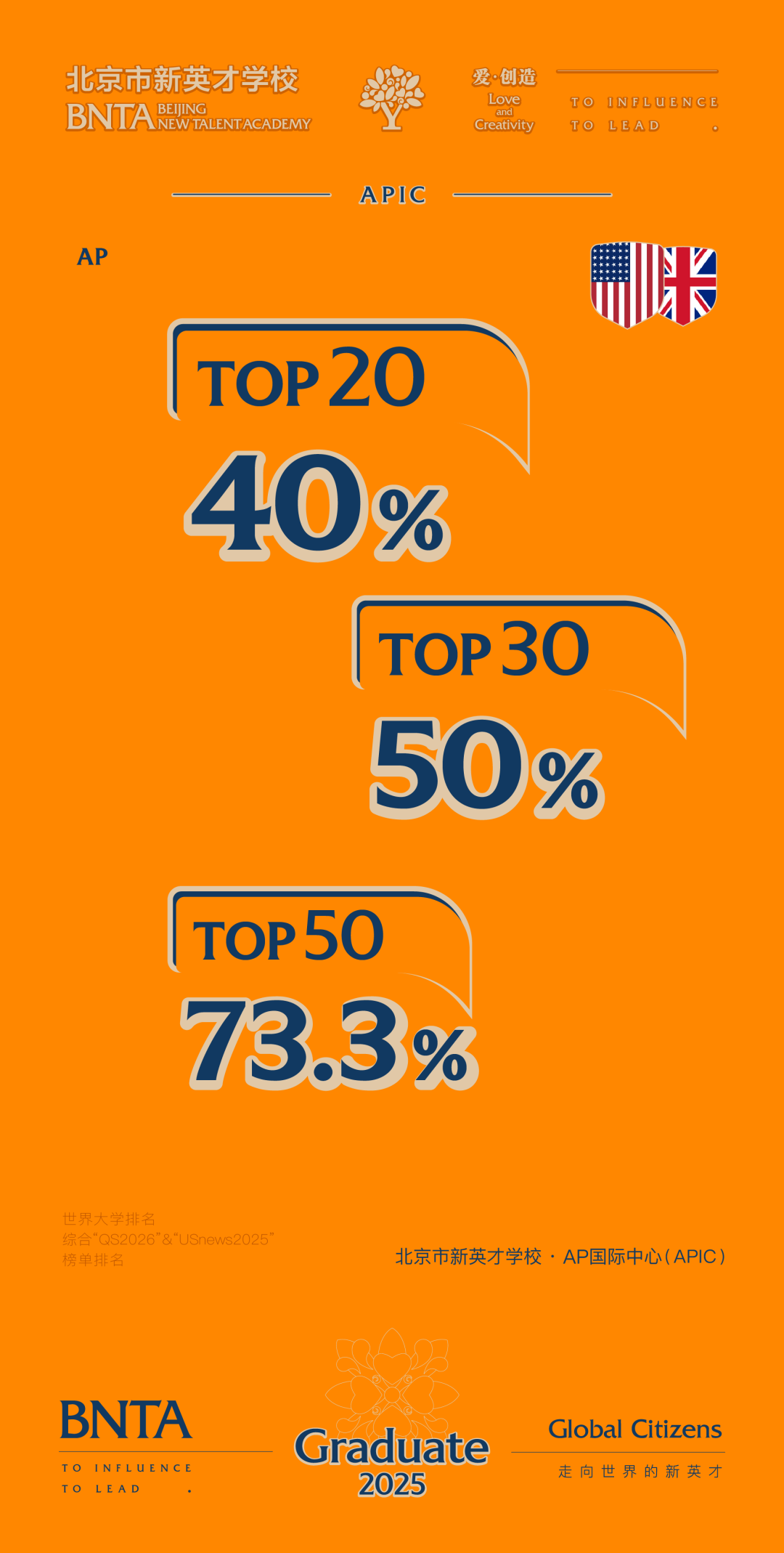 北京市新英才学校2025届全部毕业生,涵盖A Level课程、AP课程、国内高中课程、HKDSE课程以及艺术类方向,以深厚的学术积淀与蓬勃的成长力量,交出了一份耀眼的成绩单。