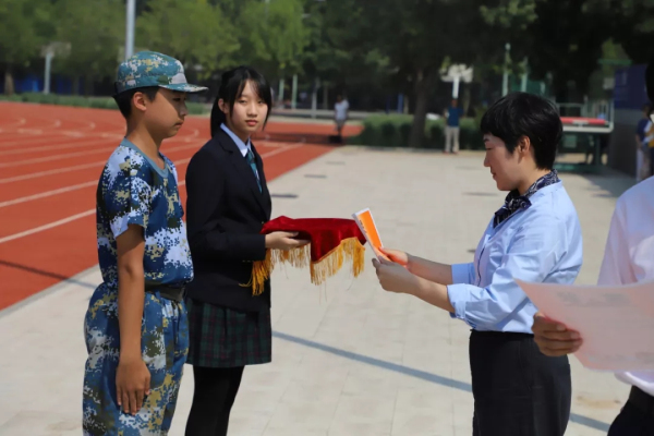 9月6日,北京市新英才学校剑桥国际中心2019级新生军训闭营式上,137名参训新生接受校长、老师和父母的检阅。蓝天白云,秋日骄阳,少年正色着戎装;飒飒英姿傲骨,堪堪少年襟肠。浩气凌霄汉,壮怀激层浪。旌旗漫卷,胜却词章。沙场秋点兵,青春集结号吹响!