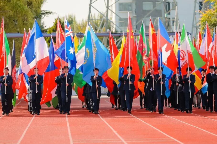 年华如歌,异彩纷呈;旌旗猎猎,旗开得胜!各国国旗方阵由英才书院高三毕业班同学组成,今天,他们以整齐的队列致敬过往;明天,他们必将以坚定的脚步奔赴未来。祝愿所有学子在2026年追梦成功,考入理想大学,创造新的辉煌!