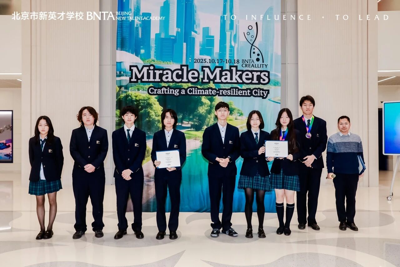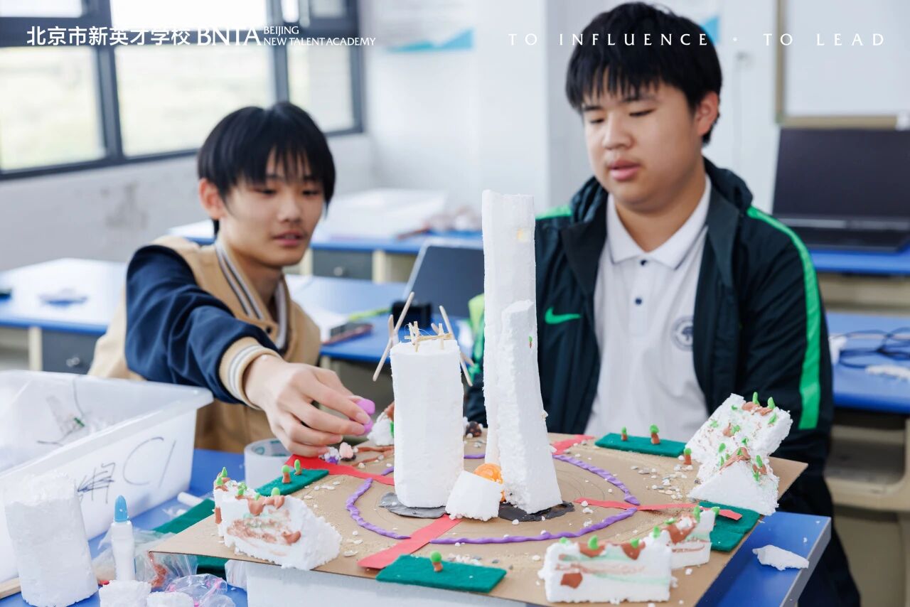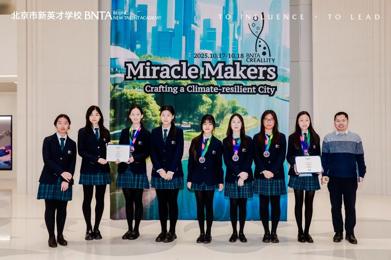 “我们把城市命名为‘Happy Piggy’。它代表着我们内心可爱的一面,不希望作品只有冷冰冰的学术感。备赛期间,每天做模型是常态。我们团队有人负责天马行空地提想法,有人是能把水车、水泵等科学原理变为现实的‘技术担当’,还有人是答辩环节掌控全场的‘演讲小天才’。正是在这种有摩擦、有协作的互动中,我们的团队越来越默契。特别想感谢我们的指导老师曾媛媛老师。答辩前夜,她提醒我们要将设计与真实地理环境结合。我们立刻去查资料,把方案与‘北京房山’的地形与气候特点对应起来。没想到,第二天外教真的问到了这个问题——因为我们准备充分,才能从容应答。这份荣誉,离不开老师的点拨与团队每个人的坚持。”