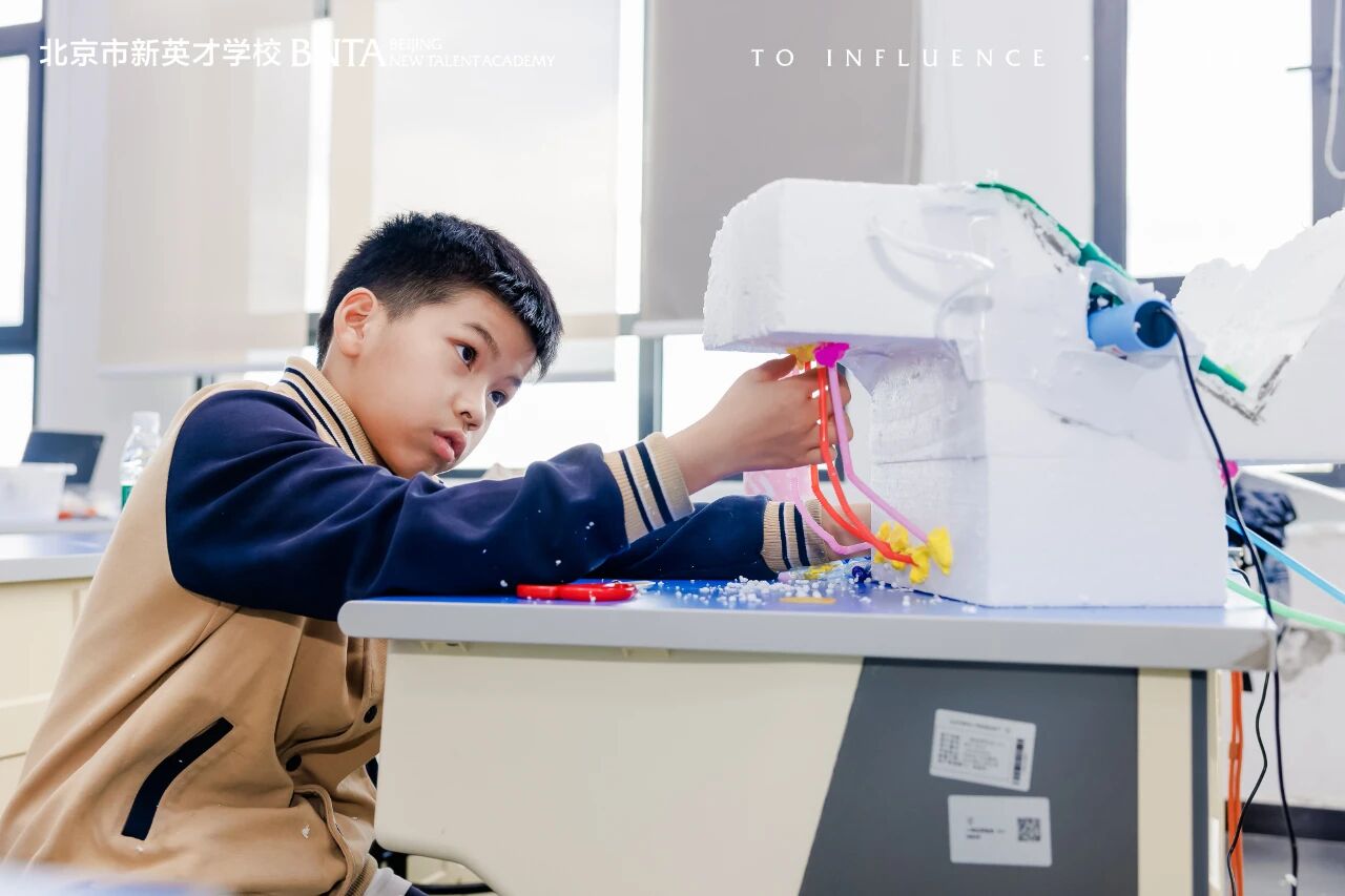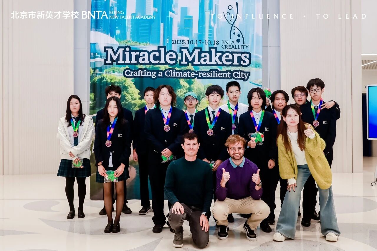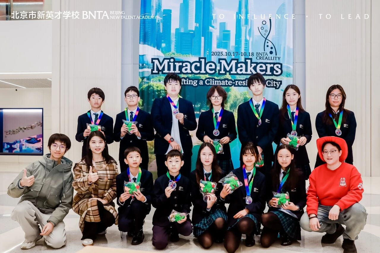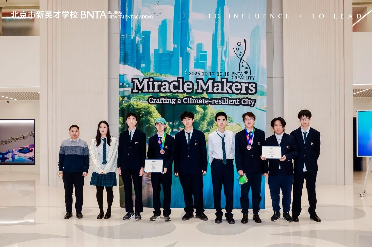 “我们把城市命名为‘Happy Piggy’。它代表着我们内心可爱的一面,不希望作品只有冷冰冰的学术感。备赛期间,每天做模型是常态。我们团队有人负责天马行空地提想法,有人是能把水车、水泵等科学原理变为现实的‘技术担当’,还有人是答辩环节掌控全场的‘演讲小天才’。正是在这种有摩擦、有协作的互动中,我们的团队越来越默契。特别想感谢我们的指导老师曾媛媛老师。答辩前夜,她提醒我们要将设计与真实地理环境结合。我们立刻去查资料,把方案与‘北京房山’的地形与气候特点对应起来。没想到,第二天外教真的问到了这个问题——因为我们准备充分,才能从容应答。这份荣誉,离不开老师的点拨与团队每个人的坚持。”