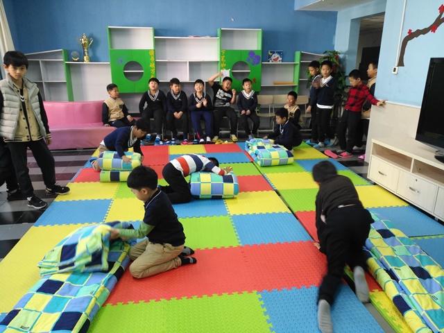 11月份的北京逐渐步入寒冷的冬天,新英才学校小学部生活区内的气氛却空前的热闹,孩子们有的在认真紧张的忙碌;有的在开心的欢呼雀跃;有的在热情的加油助威。他们在做什么?原来这是小学部生活区组织的一场别开生面的内务比赛,他们是以闯关的形式,叠衣服、叠被子、洗袜子、整理箱包等几项技能同时展开的过关比赛。