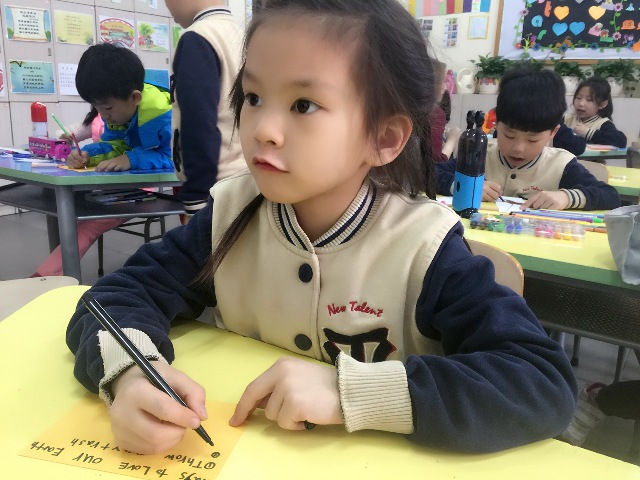 当无知的人们继续向大地、海洋里随意丢弃垃圾的时候,新英才一年级的小朋友们正在科学课堂里聆听关于这个快乐的“黄金”星球的故事。他们无法相信,地球曾经是那么洁净,那么明亮,那么快乐。他们惊讶地发现是人类的污染把地球变得如此污秽不堪。他们思考着怎样才能让地球妈妈恢复往日的快乐:废物循环、节约用水、随手关灯、绿色出行……他们兴奋地想把净化地球的好方法传播出去。并且去还原一个更清洁,更快乐的地球。