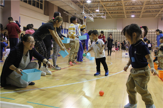 开幕式结束后,幼儿园“我运动、我健康、我快乐”的亲子运动会在新英才学校一楼篮球馆内开始啦!伴随着灵动的进行曲、响亮的口号,家长们与幼儿迈着有力的步伐,形成一道亮丽的风景。