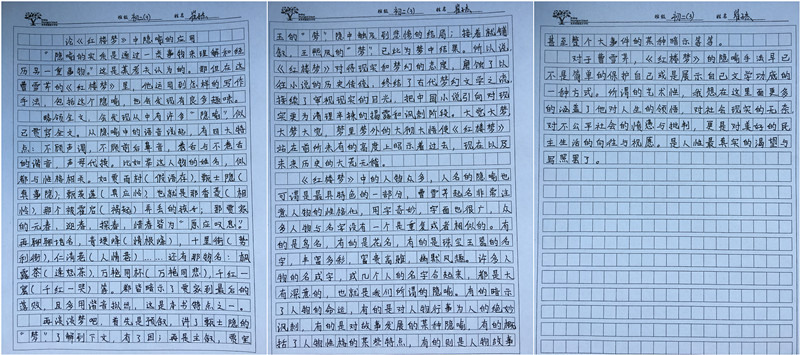 4月份为AP中心的经典阅读月,为此语文组开展了一系列活动,带着孩子们徜徉于书海间。我国四大古典《红楼梦》是中国古典小说举世公认的巅峰之作。本月老师们带领初二年级的孩子们共读《红楼梦》。老师们利用课上和自习时间,和孩子们一起品读《红楼梦》,并观赏了87版的视频。孩子们从最开始的被动变得主动,甚至认真研读了著名学者刘心武的《揭秘红楼梦》,课下讨论的话题也都离不开《红楼梦》,有的孩子俨然成了“小红学家”。
